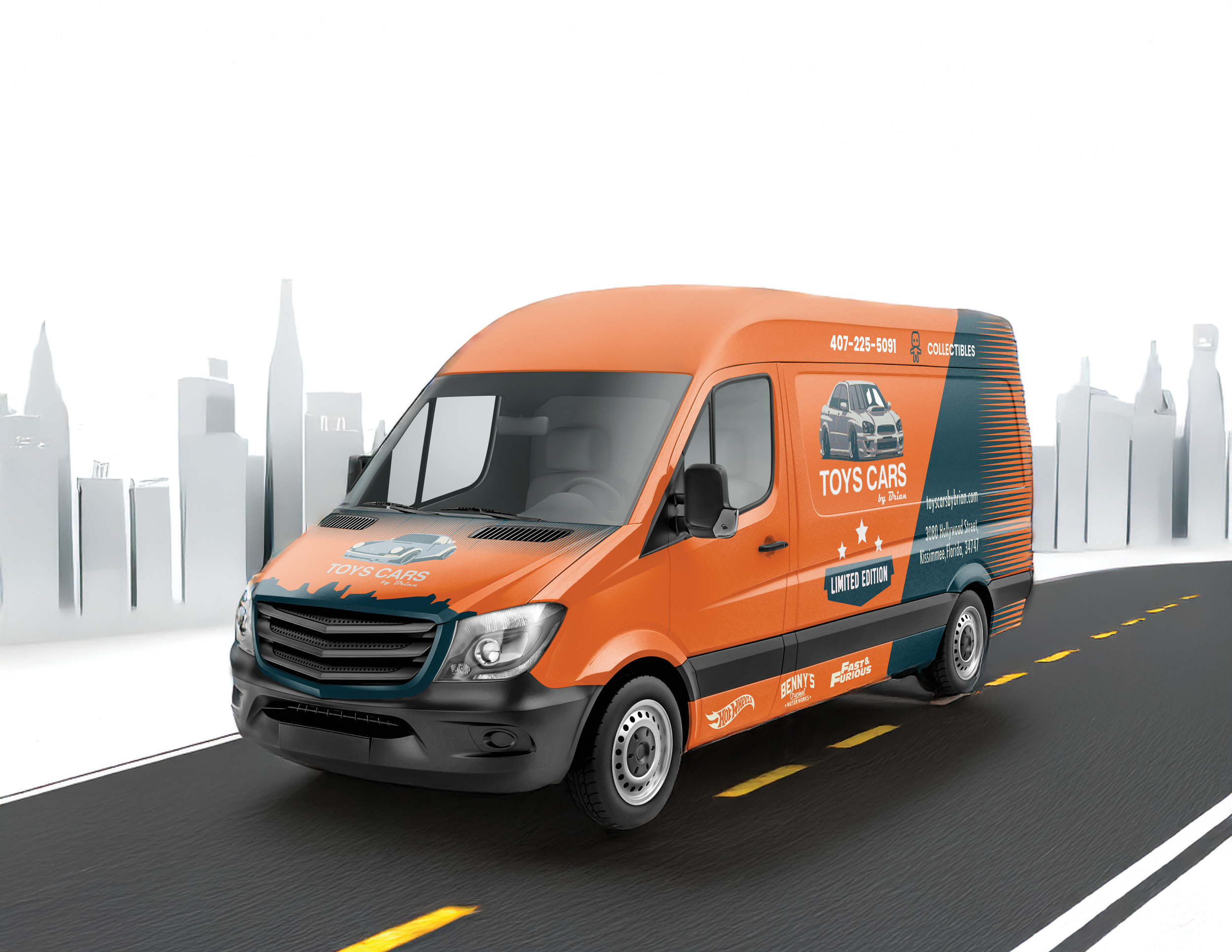 For Toys Cars By Brian, I crafted a memorable brand identity that appeals to both children and adult car enthusiasts. Leading the visual branding, I designed a sleek logo that embodies the thrill of speed and adventure. In a promotional collaboration with Hot Wheels, I created striking vehicle wraps for real cars, enhancing the brand’s presence dynamically and playfully. I further extended brand engagement by designing a range of merchandise, including clothing and accessories, to captivate fans and collectors alike.
